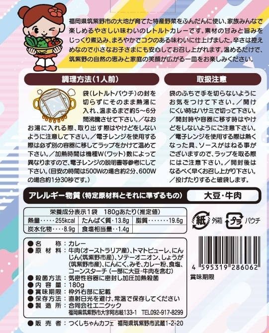 牛肉(オーストラリア産)、トマトピューレ、にんじん、ソテーオニオン、しょうが、にんにく、みそ、カレー粉、食塩、コーンスターチ